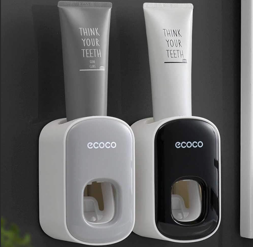 EZ Glide Automatic Toothpaste Dispenser Dust-Proof Toothbrush Holder Wall Mount Stand Bathroom Accessories Set Toothpaste Squeezer